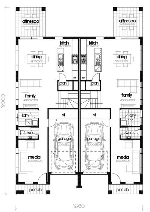 The Bluebell 43 is a thoughtfully designed duplex that combines modern style with smart functionality. Perfect for families or investors, this design maximises space across two contemporary homes while maintaining comfort and privacy. Each side features generous living zones, well-sized bedrooms, and seamless indoor–outdoor flow for everyday living or entertaining. With three bedrooms, multiple bathrooms, and a secure garage in each residence, the Bluebell 43 offers flexibility for growing families or the opportunity to live in one and rent the other. It’s a smart choice for those wanting lifestyle and investment in one stunning design.